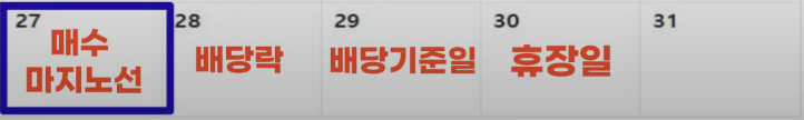 31일 -> 주말일 경우 30일 -> 휴장일이기 때문에 29일이 기준일