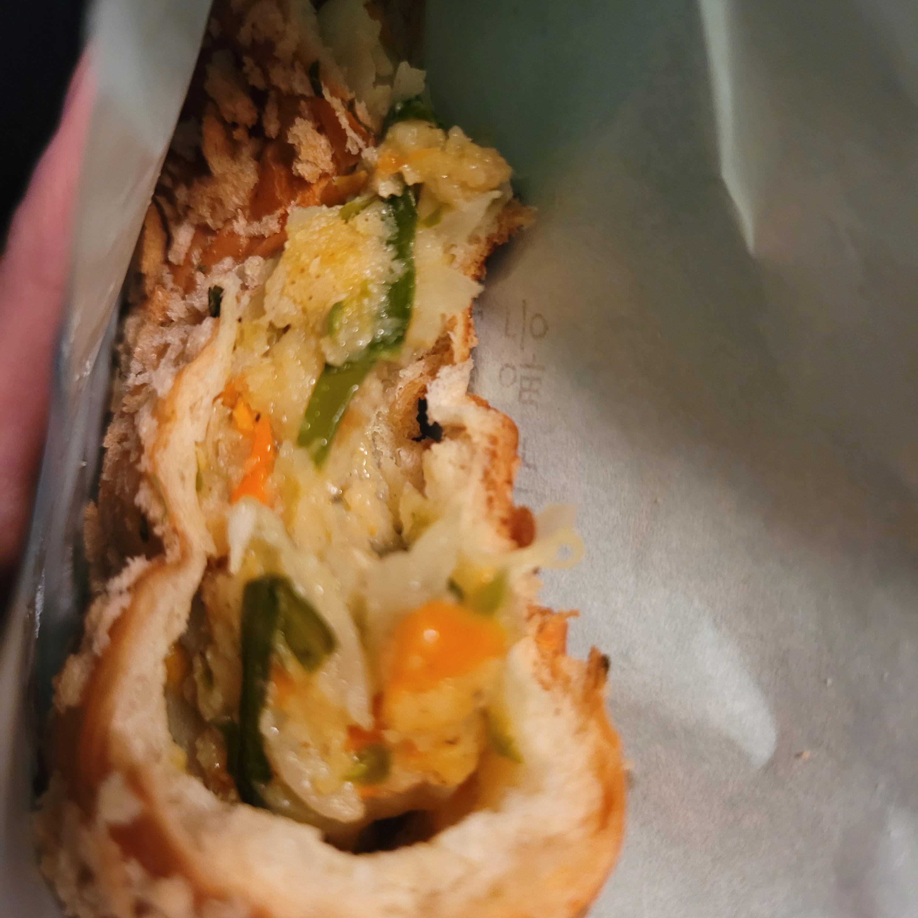 그래서 옥수수빵이랑 , 고추/야채 고로캐 이렇게 사들고 나왔습니다.